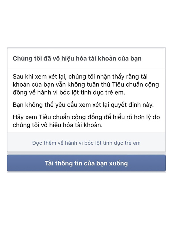 Facebook bị vô hiệu hóa do vi phạm chính sách hoặc chưa đủ tuổi, hoặc vi phạm bản quyền