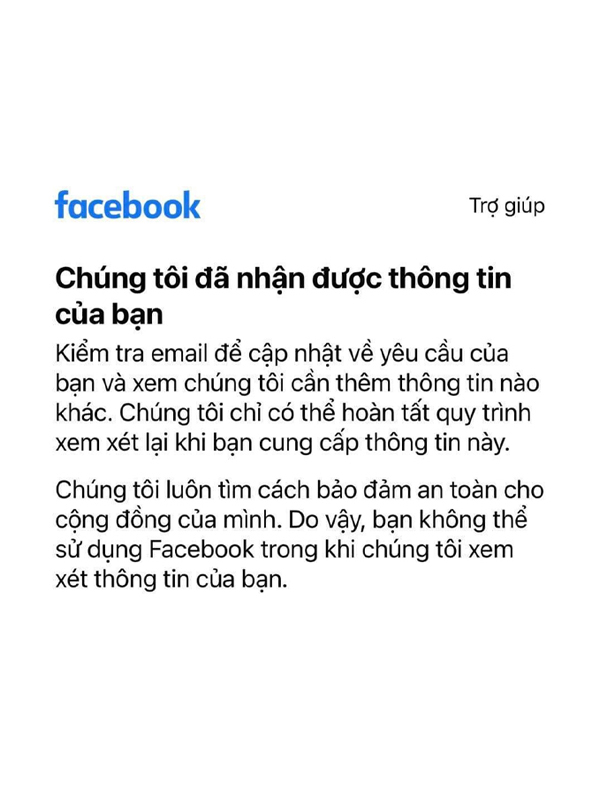 • Dấu hiệu: Thường vi phạm tiêu chuẩn cộng đồng nào đó khiến tài khoản Faceobok bị khóa lại